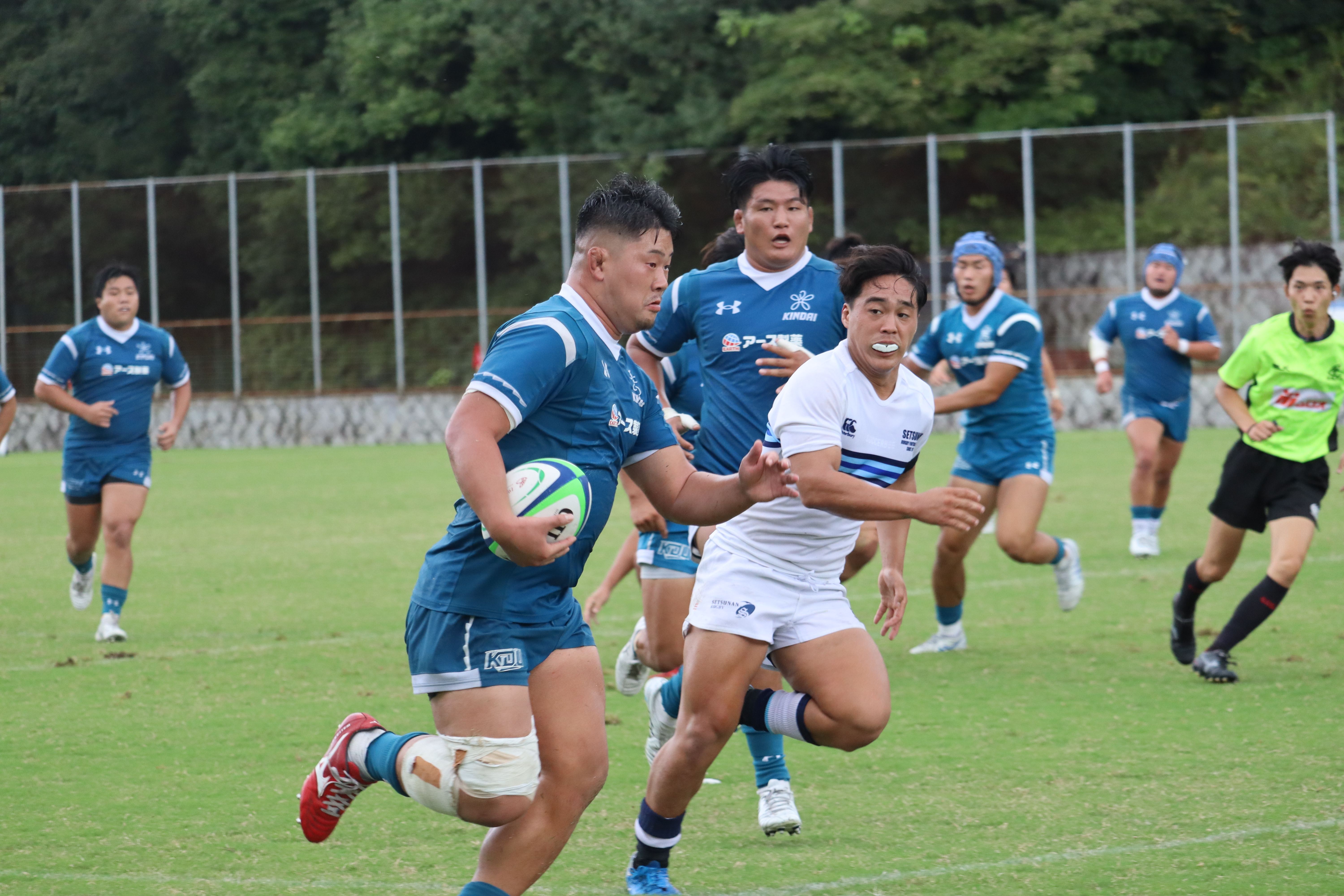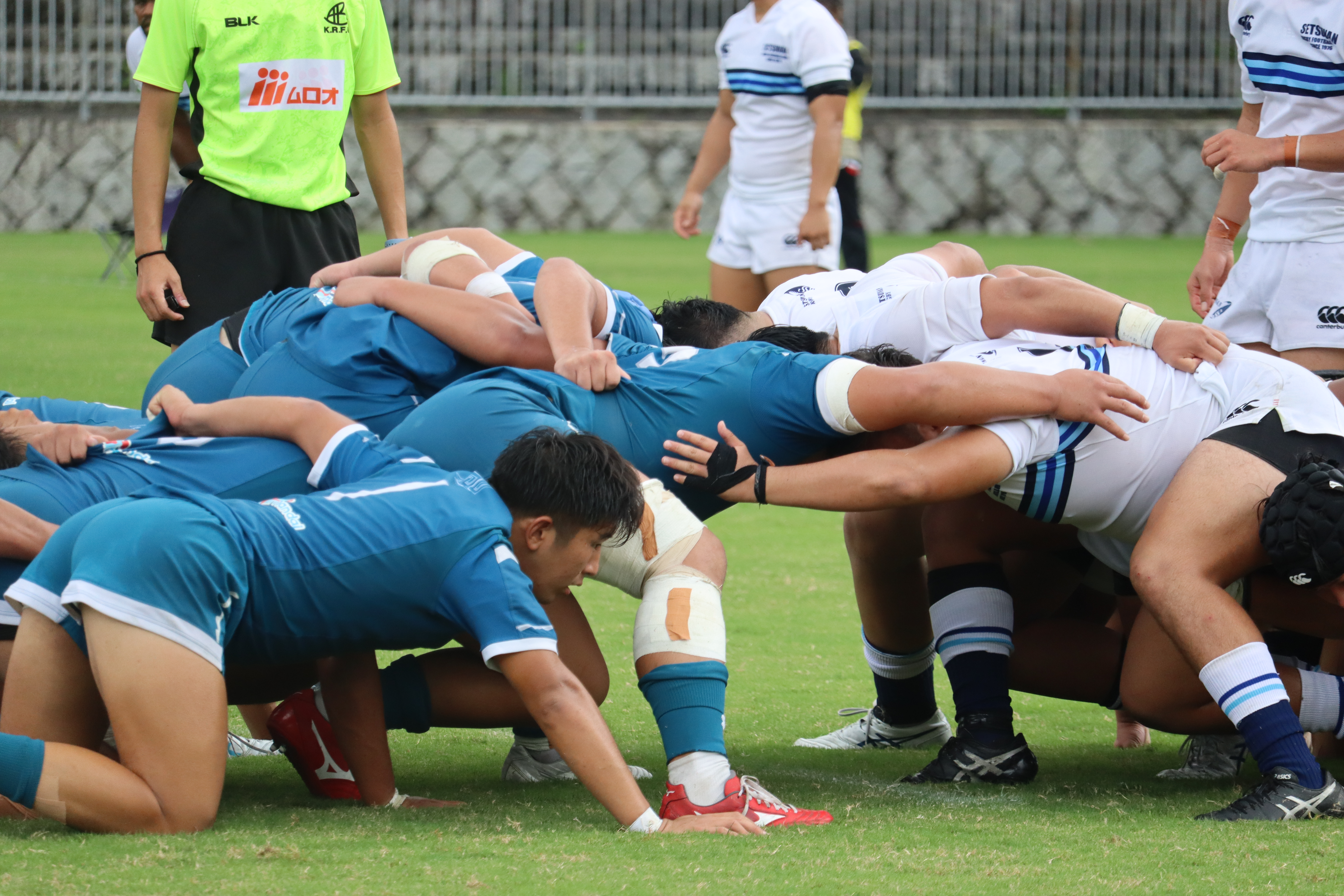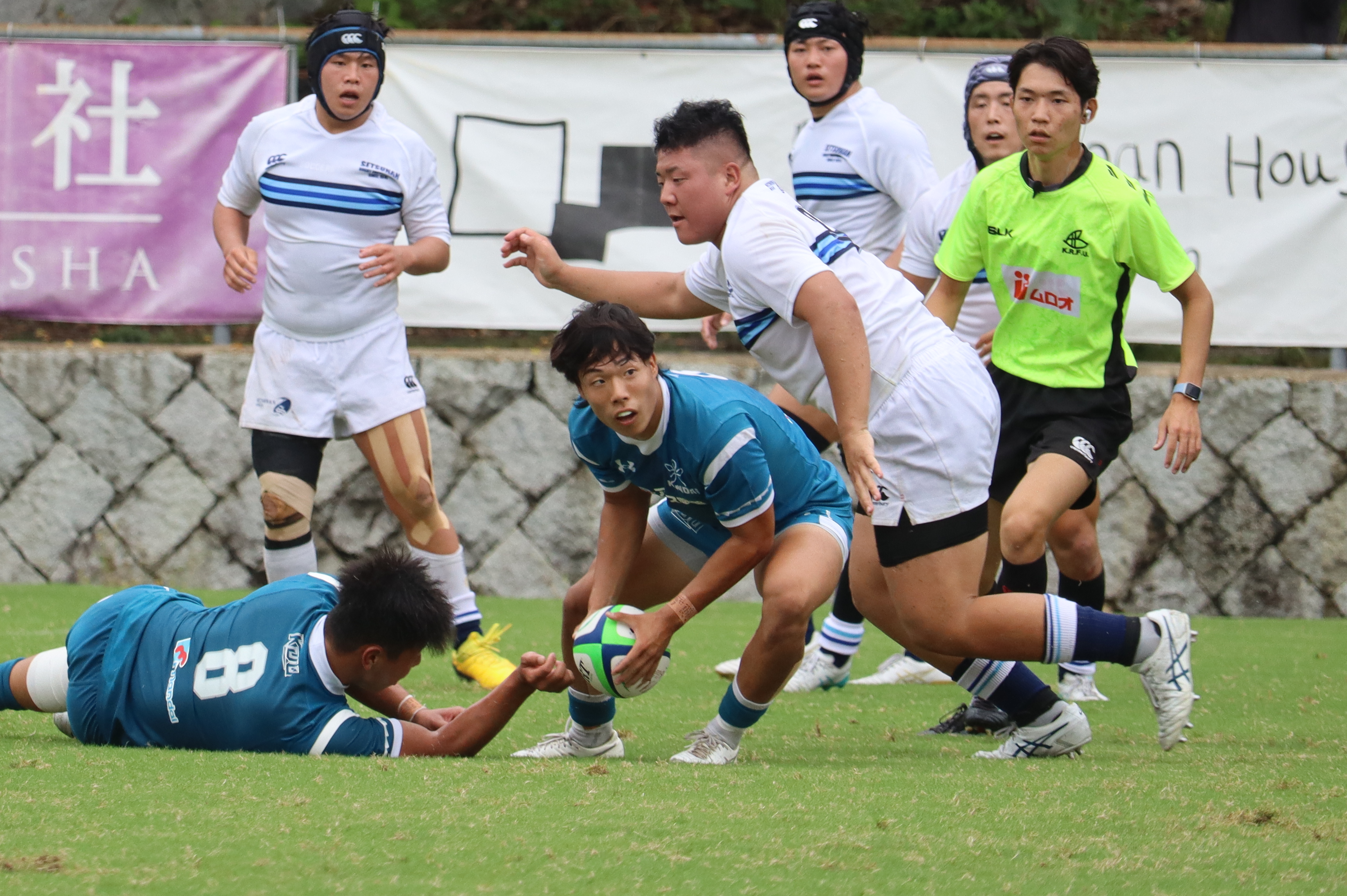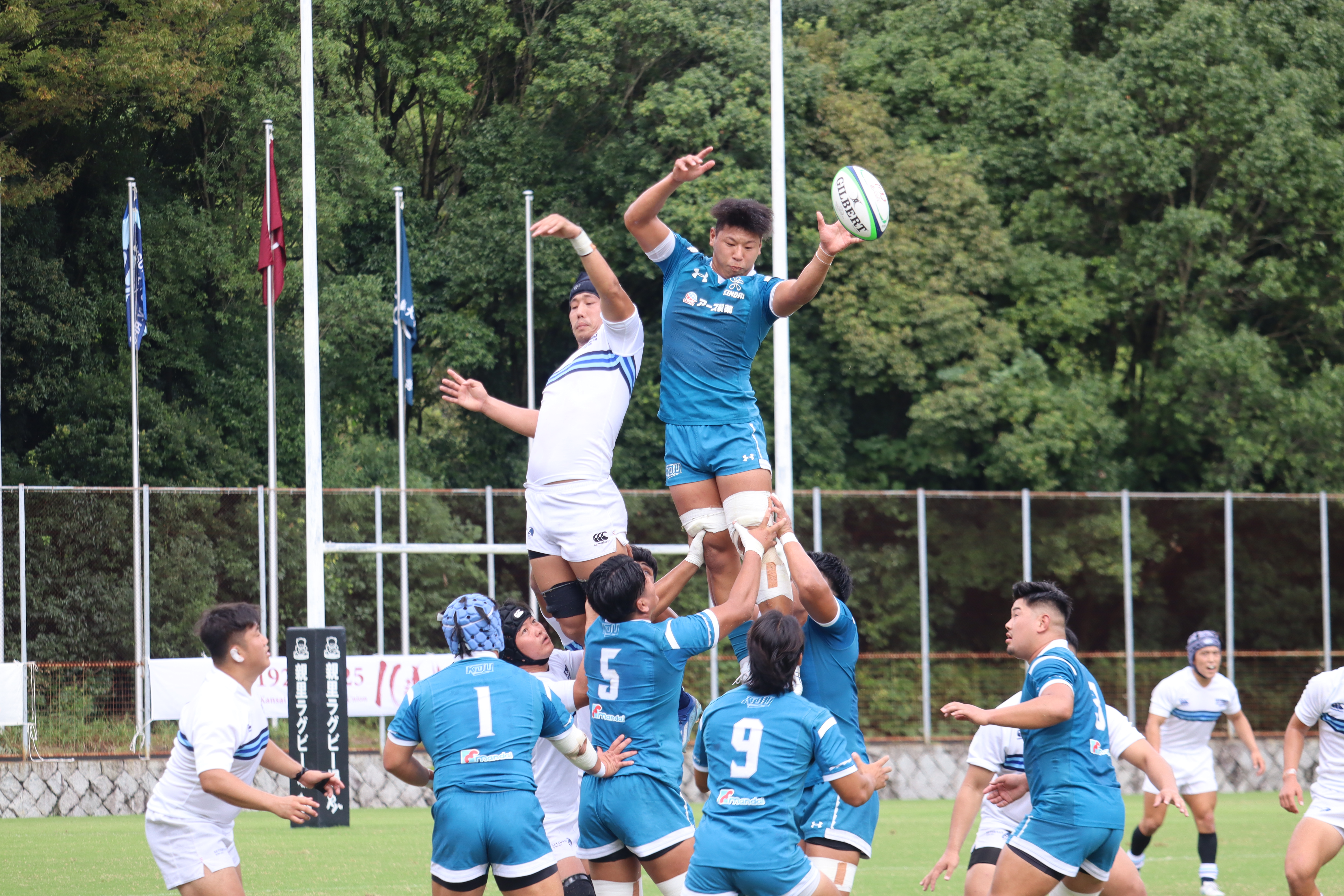 敵陣10m付近中央ラックより、9渡邊-7加藤-10須田-14太田とつなぎ左中間トライ(33-14)