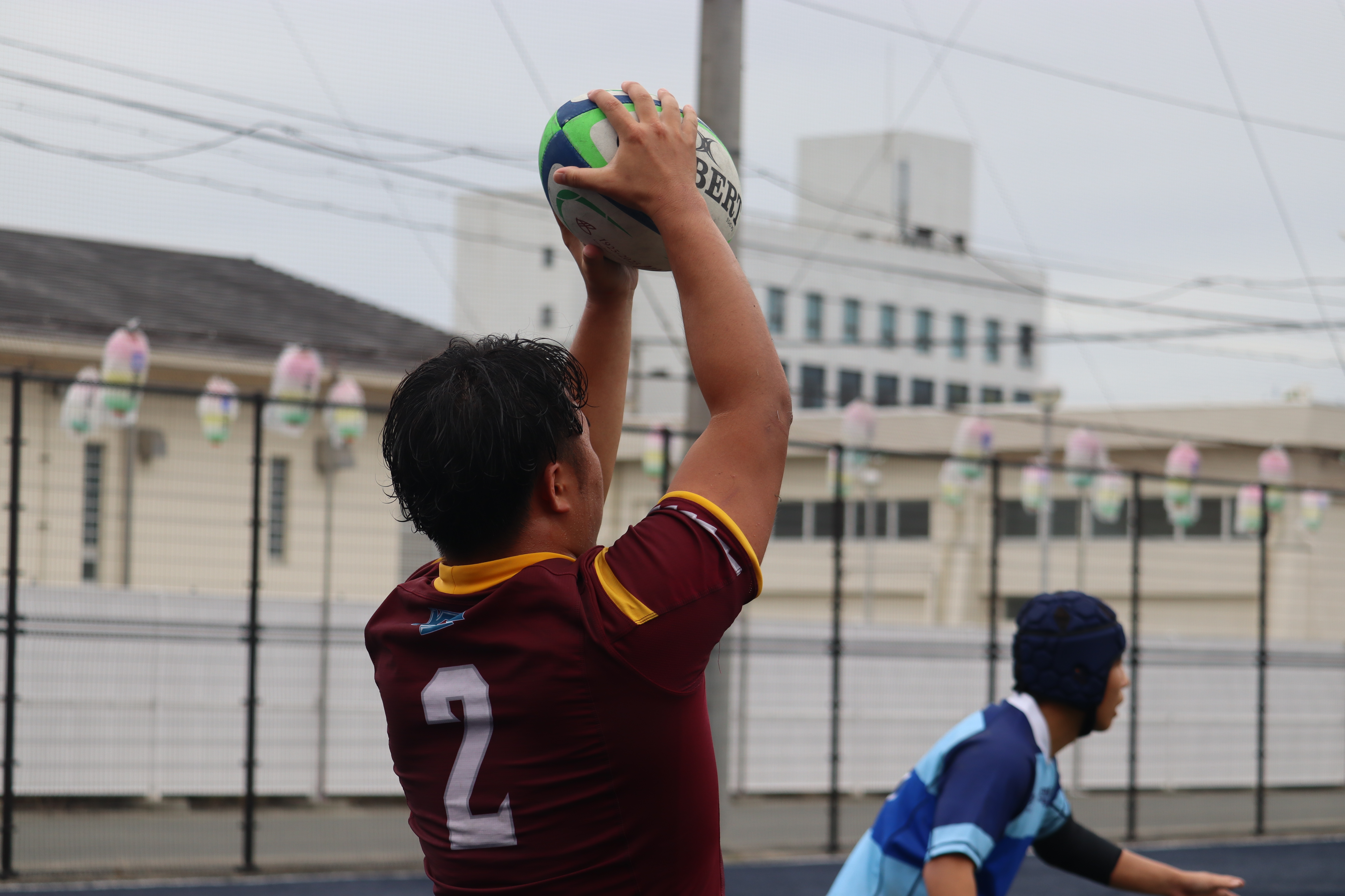 敵陣5m付近左ラインアウトよりモールを形成し、2井上(貴)が押し込み左中間トライ(5-0)